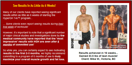 HyperGH X14 uses what is thought to be the ultimate HGH promoting formula that works with your normal arcadian rhythm to boost your own levels of HGH and alng with it your strength and muscle mass quickly, safely and legally.