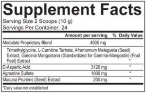Plus -3120mg of D-Aspartc acid, 1000mg of Agmatine Sulfate and 200mg of Mucuna Pruriens.